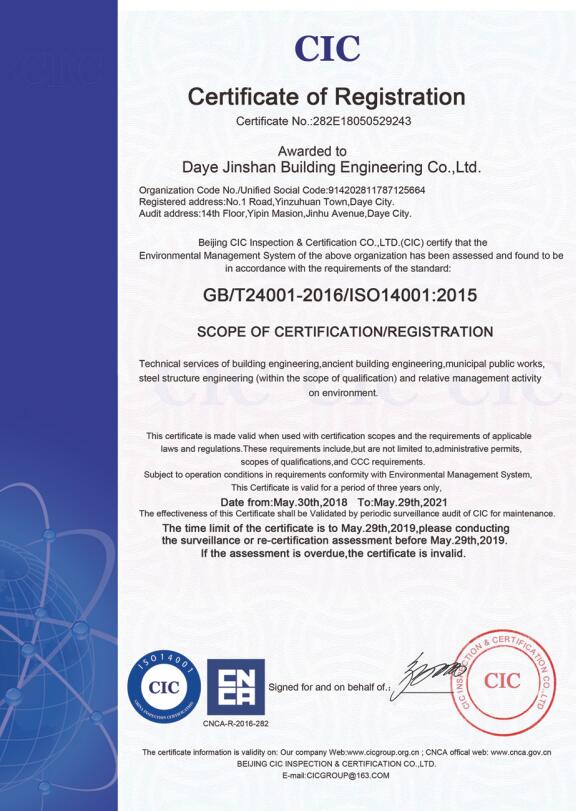大冶金山建筑工程有限公司始建于1984年,屬鎮(zhèn)辦集體企業(yè)。1997年改制為大冶山建筑工程有限責(zé)任公司,屬股份制企業(yè)。2013年更名為大冶金山建筑工程有限公司,2018年3月公司資源重組,公司注冊資金達到10180.00萬元,公司法定代表人為劉瑞華。公司具有古建筑工程專業(yè)承包壹級、建筑工程施工總承包貳級、市政工程總承包叁級、鋼結(jié)構(gòu)工程專業(yè)承包叁級資質(zhì)。